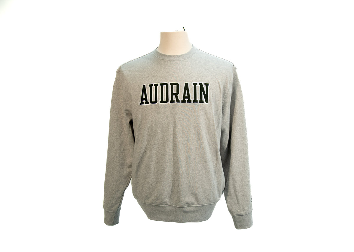 The Audrain Crewneck is a premium grey sweatshirt crafted for comfort and style, featuring the distinctive 'AUDRAIN' lettering prominently across the chest. Made with high-quality fabric, this crewneck ensures a soft, durable wear ideal for everyday use or casual outings. The subtle Audrain logo embroidered on the wrist adds a refined touch of authenticity and brand heritage, making it a sophisticated piece for enthusiasts who appreciate understated elegance. Designed with expert tailoring, this sweatshirt balances timeless appeal with modern comfort, reflecting the prestigious legacy of the Audrain Automobile Museum.